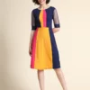 Step into effortless style with this Women’s Multicolor A-Line Dress. Crafted from premium Lycra fabric, this one-piece dress combines comfort with a chic design that flatters every body type. The regular fit and A-line silhouette make it perfect for casual outings, brunch dates, or evening get-togethers. Available in vibrant shades of blue, yellow, and pink, this dress is designed to give you a fashionable edge while keeping you comfortable all day long.